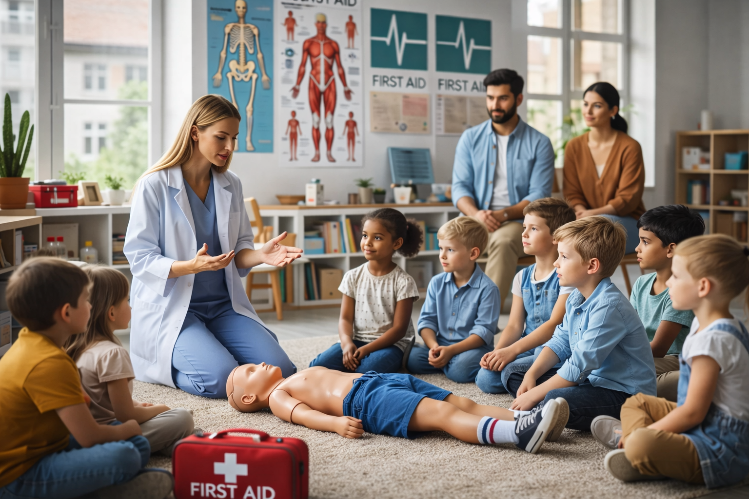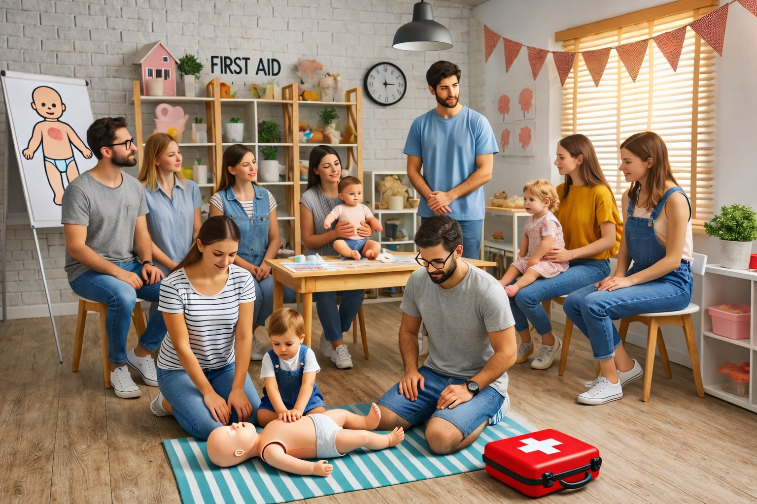 Eltern, Großeltern und Betreuer erhalten in dieser Schulung das Wissen und die Fähigkeiten, um im Notfall adäquat auf Verletzungen und plötzliche Erkrankungen von Kindern reagieren zu können.
